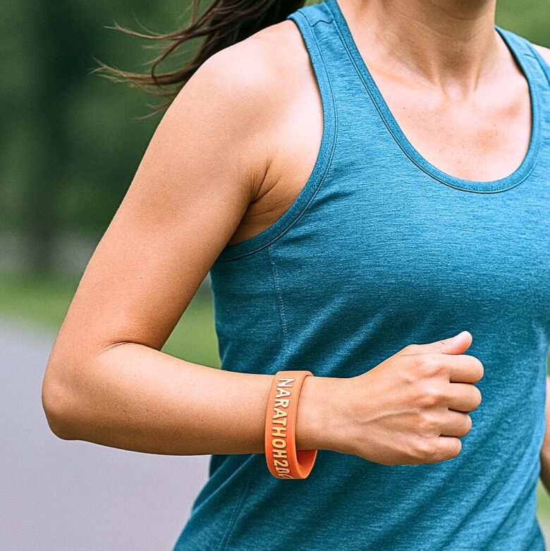 走る人も応援する人も、同じロゴ入りリストバンドで気持ちをひとつに。